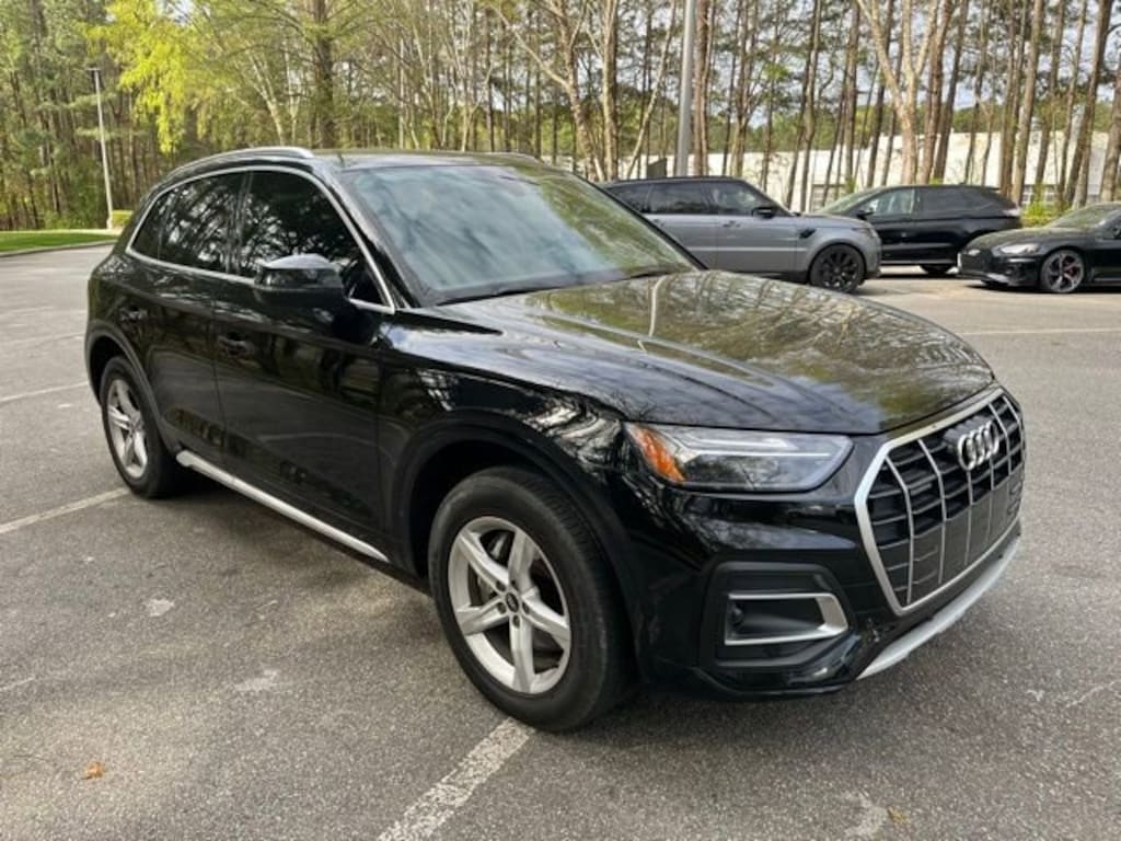Brilliant Black 2021 Audi Q5 45 Premium quattro quattro 7-Speed Automatic S tronic 2.0L Turbocharged Black w/Leather Seating Surfaces, Audi Beam-Rings.
