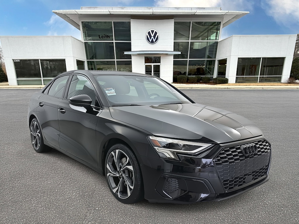 Brilliant Black 2023 Audi A3 40 Premium FrontTrak FrontTrak 7-Speed Automatic S tronic 2.0L 4-Cylinder TFSI ABS brakes, Alloy wheels, Electronic Stability Control, Emergency communication system, Front dual zone A/C, Heated door mirrors, Heated Front Bucket Seats, Heated front seats, Illuminated entry, Low tire pressure warning, Power moonroof, Remote keyless entry, Traction control.
