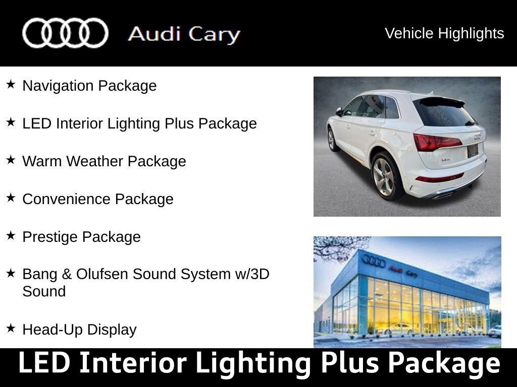 Arkona White 2024 Audi Q5 45 S line Prestige quattro 7-Speed Automatic S tronic 2.0L Turbocharged quattro CARFAX One-Owner. Clean CARFAX. Atlas Beige w/Leather Seating Surfaces, Audi Virtual Cockpit Plus, Bang & Olufsen Sound System w/3D Sound, Convenience Package, Dual Pane Acoustic Glass for Front Side Windows, Head-Up Display, Heated & Cooled Front Cup Holder, Heated Rear Seats, Leatherette Covered Center Console & Door Armrests, LED Interior Lighting Plus Package, Matrix-Design LED Headlights w/Headlight Washers, Navigation Package, Panoramic Sunroof, Park Assist, Power Adjustable Steering Column, Prestige Package, Top View Camera System, Trailer Hitch, Warm Weather Package, Wheels: 19" 5-Double-Arm Design Bi-Color Finish, Wireless Phone Charging Pad.