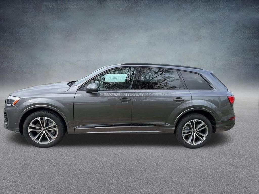 Samurai Gray Metallic 2025 Audi Q7 45 Premium quattro 8-Speed Automatic with Tiptronic 2.0L 4-Cylinder TFSI quattro CARFAX One-Owner. Clean CARFAX. Anthracite Gray Audi Rings, Bang & Olufsen Premium Sound System with 3D Sound, Black Exterior Trim, Convenience Plus Package, Dark Chrome Exhaust Tips, Heated Steering Wheel, LED Interior Lighting Package Plus, Top View Camera System, Traffic Sign Recognition, Wheels: 20" 5-Double-Spoke Bicolor Finish.
