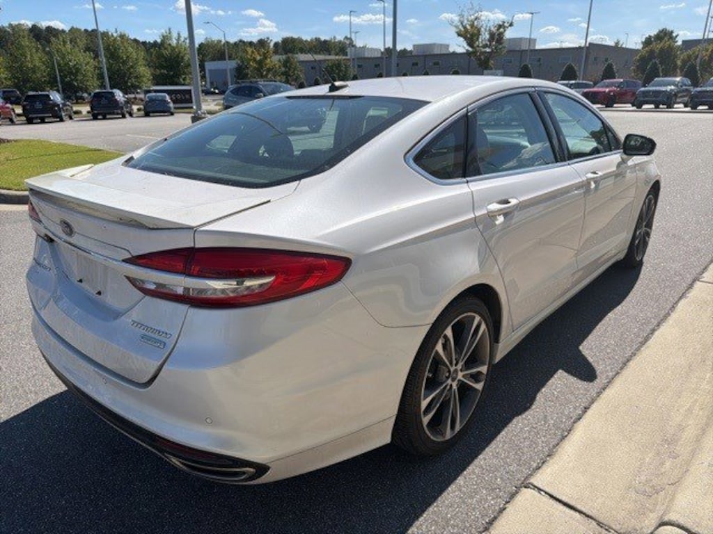 White Platinum 2017 Ford Fusion Titanium FWD 6-Speed Automatic EcoBoost 2.0L I4 GTDi DOHC Turbocharged VCT 6-Speed Automatic, Cooled Driver and Passenger Seats, Exterior Parking Camera Rear, Fully automatic headlights, Power Moonroof, Radio: AM/FM Stereo/MP3/Single-CD, SiriusXM Radio, SYNC 3 Communications & Entertainment System, Universal Garage Door Opener.