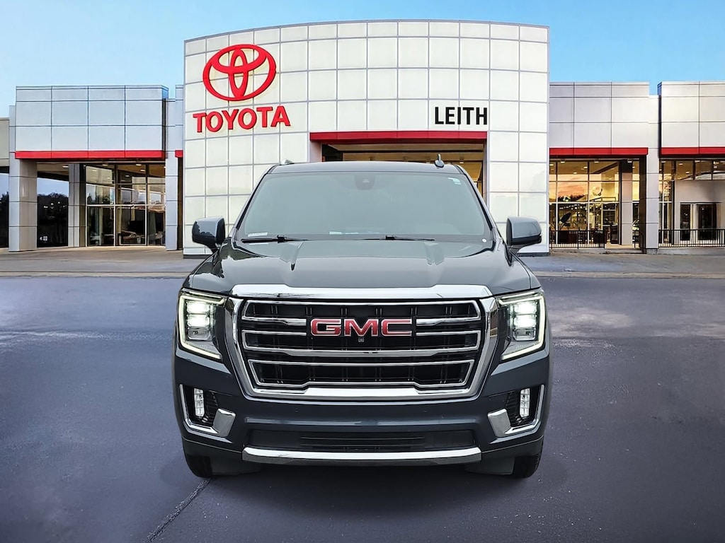 Dark Sky Metallic 2021 GMC Yukon SLT 4WD 10-Speed Automatic with Overdrive EcoTec3 5.3L V8 AS IS CAR, LOCAL TRADE IN, OWNED BY DEALER, LEATHER, HEATED SEATS, MUST SEE TO APPRECIATE!, BACK UP CAMERA, SUNROOF, 4-WHEEL DRIVE, SMART KEY W PUSH BUTTON START, APPLE CARPLAY & ANDROID AUTO, POWER LIFTGATE, 4WD, 12-Way Power Seat Adjusters, 2 Presets For Outside Rearview Mirrors, 2 Presets For Power Driver Seat, 3rd Row 60/40 Power-Folding Split-Bench Seat, Air Conditioning, Apple CarPlay/Android Auto, Auto High-beam Headlights, Auto-dimming Rear-View mirror, Automatic Emergency Braking, Automatic temperature control, Bose 9-Speaker Stereo Audio System Feature, Bright Chrome Bodyside Moldings, Bright Front & Rear Door Sill Plates, Chrome Door Handles w/Body-Color Strip, Compass, Dual-Pane Panoramic Power Sunroof, Electronic Stability Control, Following Distance Indicator, Four wheel independent suspension, Front dual zone A/C, Fully automatic headlights, Garage door transmitter, Hands-Free Power Programmable Rear Liftgate, HD Surround Vision, Heated & Ventilated Driver & Front Passenger Seats, Heated 2nd Row Outboard Position Seats, Heated Automatic Steering Wheel, Heated Driver & Front Passenger Seats, Inside Rear-View Auto-Dimming Mirror, Lane Change Alert w/Side Blind Zone Alert, Lane Keep Assist w/Lane Departure Warning, Leather steering wheel, License Plate Front Mounting Package, Memory seat, Outside Heated Power-Adjustable Mirrors, Outside temperature display, Power driver seat, Power Liftgate, Power Release 2nd Row 60/40 Split-Folding Bench Seat, Power steering, Power Tilt & Telescopic Steering Column, Power windows, Preferred Equipment Group 4SA, Premium Smooth Ride Suspension, Radio: AM/FM/SiriusXM w/Navigation, Rain sensing wipers, Rear air conditioning, Rear Media & Nav Package, Rear Pedestrian Alert, Rear seat center armrest, Rear Seat Media System, Rear window defroster, Remote keyless entry, Roof rack: rails only, Safety Alert Seat, SLT Luxury Package, SLT Premium Package, Speed-sensing steering, Steering wheel mounted audio controls, Telescoping steering wheel, Traction control, Universal Home Remote, Ventilated front seats, Wheels: 20 x 9 6-Spoke Polished Aluminum.