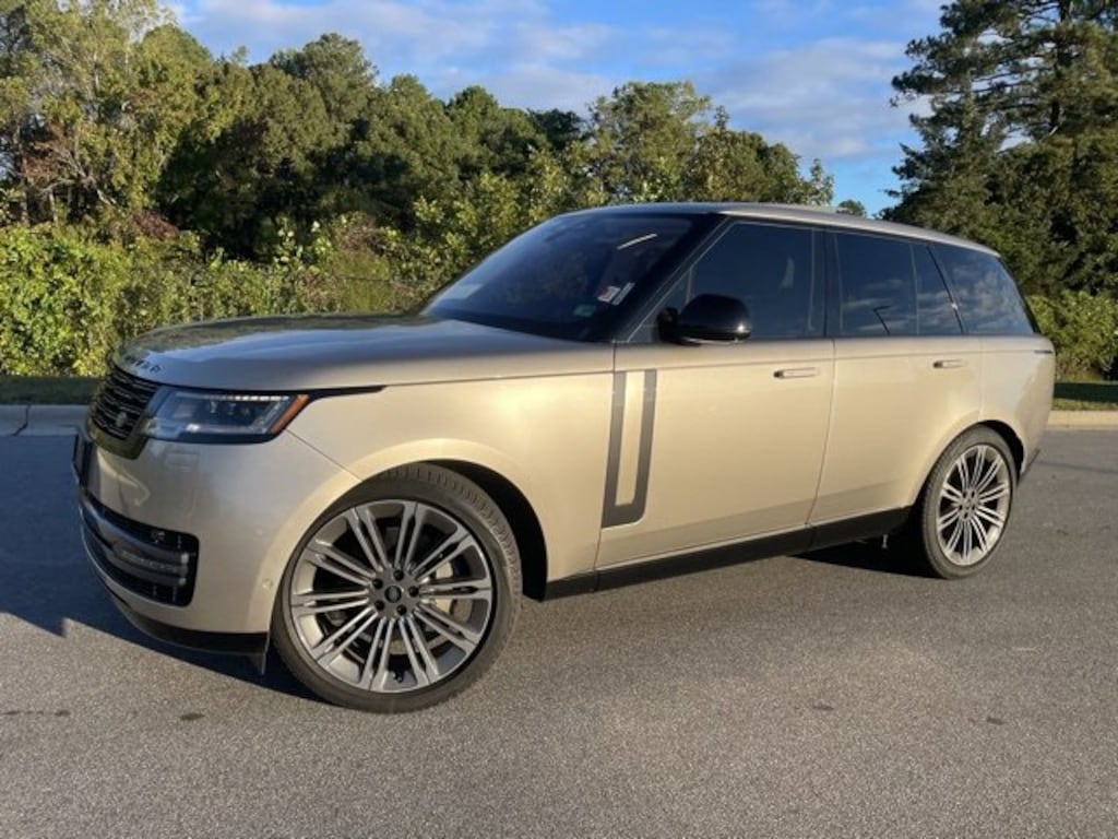 Clean CARFAX. Certified. Batumi Gold Premium Metallic 2023 LAND ROVER Range Rover SE AWD ZF 8-Speed Automatic 3.0L I6 Turbocharged Local Trade, Perlino/Perlino w/Perforated Windsor Leather Seat Trim, Wheels: 23" Gloss Black (Style 1075).