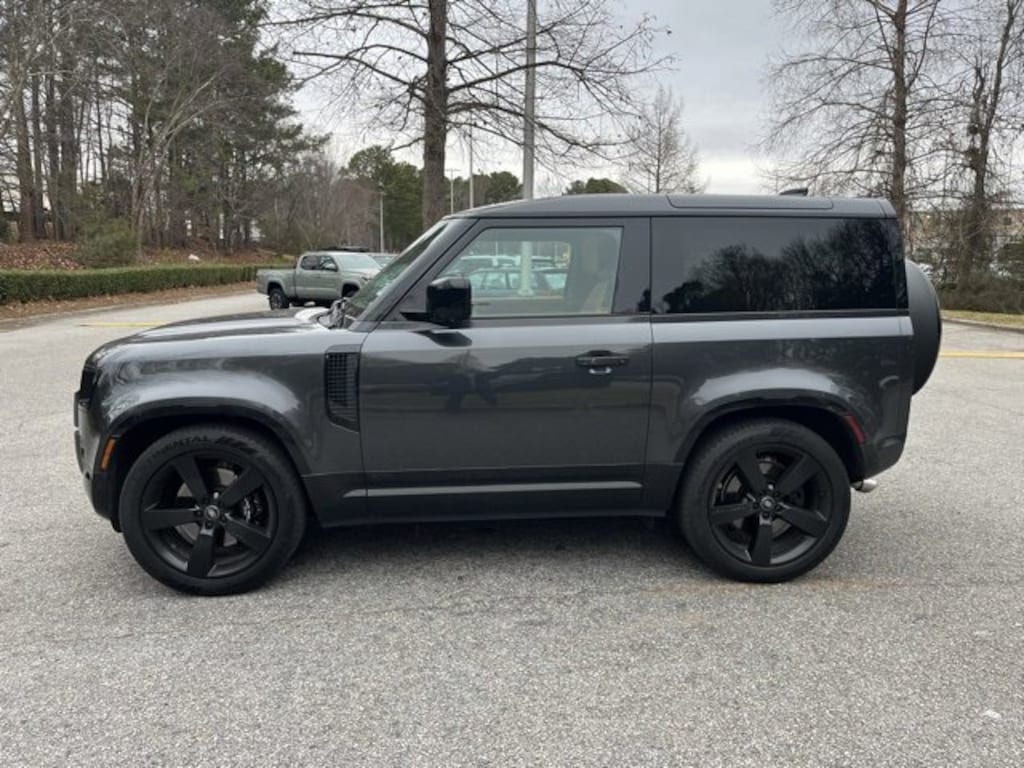 Carpathian Gray Premium Metallic 2024 LAND ROVER Defender 90 V8 4WD 8-Speed Automatic 5.0L V8 Body Colored Spare Wheel Cover, Extended Black Exterior Pack, Gloss Black Front Grille, Wheels: 22" Gloss Black Finish Style 5098, Wi-Fi Enabled w/Data Plan.