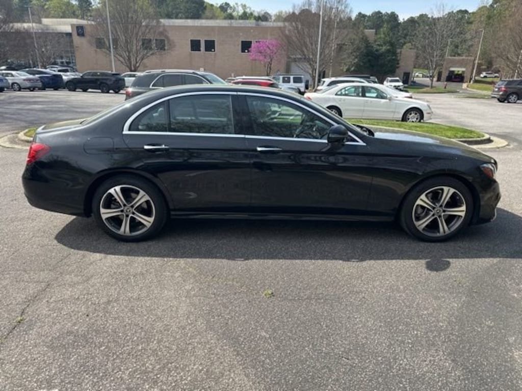 Black 2019 Mercedes-Benz E-Class E 300 4MATIC® I4 4MATIC®, 4-Way Lumbar Support, 4-Wheel Disc Brakes, 8 Speakers, ABS brakes, Active Parking Assist, Air Conditioning, AM/FM radio, AMG® Body Styling, Android Auto®, Anti-whiplash front head restraints, Apple CarPlay®, Apple CarPlay®/Android Auto®, Auto tilt-away steering wheel, Auto-dimming Rear-View mirror, Automatic temperature control, Brake assist, Burl Walnut Wood Trim, Center Console in Burl Walnut Wood, Delay-off headlights, Driver door bin, Driver vanity mirror, Dual front impact airbags, Dual front side impact airbags, Electric Trunk Closer, Emergency communication system: Mercedes me connect, Exterior Parking Camera Rear, Four wheel independent suspension, Front anti-roll bar, Front Bucket Seats, Front Center Armrest, Front dual zone A/C, Front reading lights, Fully automatic headlights, Garage door transmitter: Homelink, Genuine wood dashboard insert, Genuine wood door panel insert, Hands-Free Access, HD Radio w/SIRIUS Satellite & Real-Time Traffic, Head restraints memory, Heated door mirrors, Heated Steering Wheel, Illuminated entry, KEYLESS GO®, KEYLESS GO® Comfort Package Code, Knee airbag, Leather Shift Knob, Low tire pressure warning, MB-Tex Upholstery, Memory seat, Navigation system: COMAND®, NFC Wireless Charging, Occupant sensing airbag, Outside temperature display, Overhead airbag, Overhead console, Panic alarm, Parking Assistance Package, Passenger door bin, Passenger vanity mirror, Power adjustable front head restraints, Power adjustable rear head restraints, Power door mirrors, Power driver seat, Power Front Seats, Power moonroof, Power passenger seat, Power steering, Power windows, Premium 1 Package, Premium audio system: COMAND®, Radio data system, Radio: COMAND® Navigation, Rain sensing wipers, Rear anti-roll bar, Rear fog lights, Rear reading lights, Rear seat center armrest, Rear window defroster, Remote keyless entry, Security system, SiriusXM Radio, Speed-sensing steering, Split folding rear seat, Sport Interior, Sport Interior (P15), Sport Package, Steering wheel memory, Steering wheel mounted audio controls, Surround View Camera, Tachometer, Telescoping steering wheel, Tilt steering wheel, Traction control, Trip computer, Turn signal indicator mirrors, Variably intermittent wipers, Weather band radio.