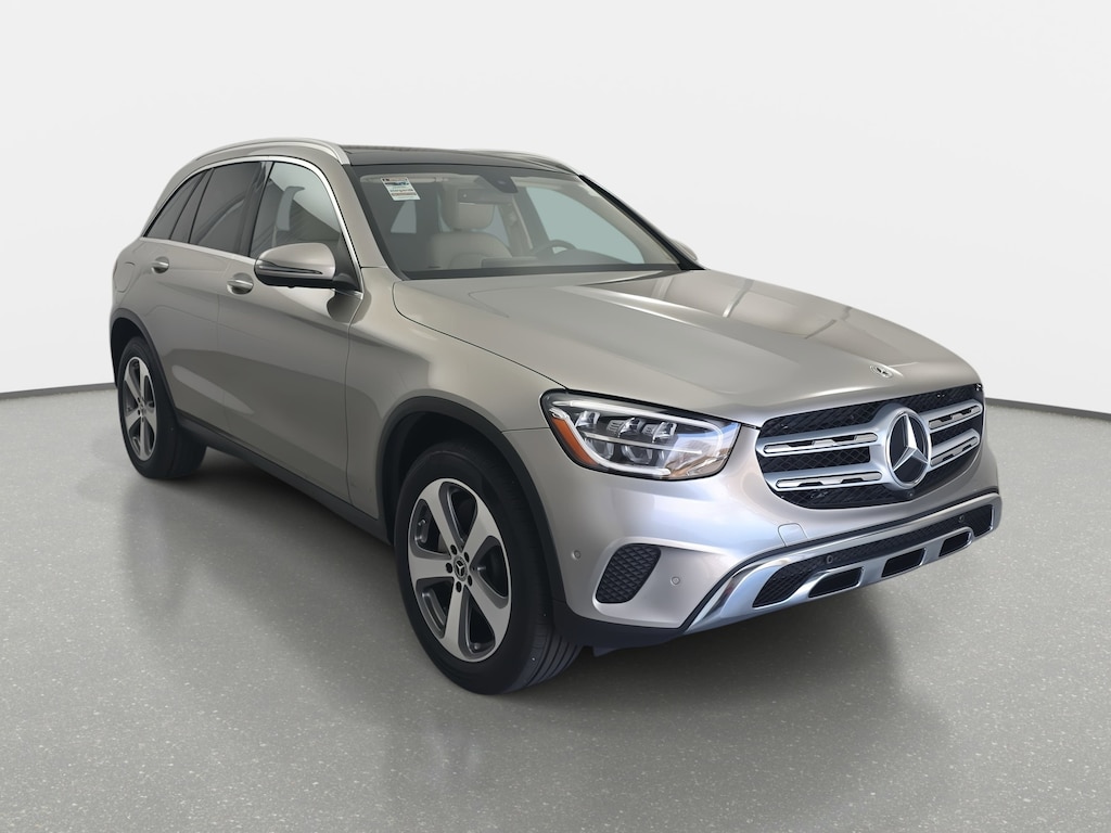 Mojave Silver Metallic 2021 Mercedes-Benz GLC GLC 300 4MATIC® I4 10.25" Center Touchscreen Display, 12.3" Digital Instrument Cluster, 4-Way Lumbar Support, 4-Wheel Disc Brakes, 6 Speakers, 64-Color Ambient Lighting, ABS brakes, Air Conditioning, AM/FM radio, Apple CarPlay®/Android Auto®, Auto tilt-away steering wheel, Auto-dimming door mirrors, Auto-dimming Rear-View mirror, Automatic temperature control, Brake assist, Bumpers: body-color, Burmester® Surround Sound System, Child-Seat-Sensing Airbag, Delay-off headlights, Driver door bin, Driver vanity mirror, Dual front impact airbags, Dual front side impact airbags, Electronic Stability Control, Emergency communication system: eCall Emergency System, Exterior Parking Camera Rear, Four wheel independent suspension, Front anti-roll bar, Front Bucket Seats, Front Center Armrest, Front dual zone A/C, Front reading lights, Fully automatic headlights, Garage door transmitter: HomeLink, Genuine wood dashboard insert, Heated door mirrors, Heated Front Bucket Seats, Heated front seats, Illuminated Door Sills, Illuminated entry, Illuminated Star, Knee airbag, Leather steering wheel, Low tire pressure warning, MB-Tex Upholstery, Memory seat, Occupant sensing airbag, Outside temperature display, Overhead airbag, Overhead console, Panic alarm, Panorama Sunroof, Passenger door bin, Passenger vanity mirror, Power door mirrors, Power driver seat, Power Front Seat w/Driver Memory, Power Liftgate, Power passenger seat, Power steering, Power windows, Premium Package, Radio data system, Radio: MBUX Multimedia System, Rain sensing wipers, Rear anti-roll bar, Rear fog lights, Rear reading lights, Rear seat center armrest, Rear window defroster, Rear window wiper, Remote keyless entry, Roof rack: rails only, Security system, SiriusXM Satellite Radio, Speed control, Speed-sensing steering, Split folding rear seat, Spoiler, Steering wheel memory, Steering wheel mounted audio controls, Tachometer, Telescoping steering wheel, Tilt steering wheel, Traction control, Trip computer, Turn signal indicator mirrors, Variably intermittent wipers, Wheels: 8J x 18 ET 38 Split 5-Spoke.