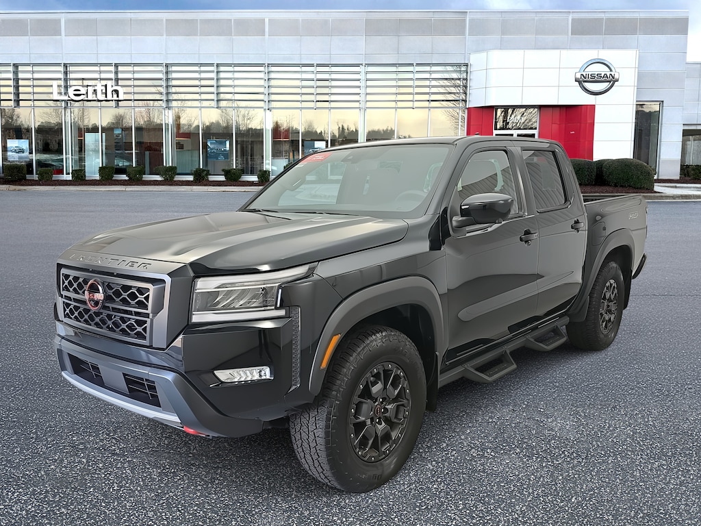 Super Black 2023 Nissan Frontier PRO-4X 4WD 9-Speed Automatic 3.8L DI DOHC 24V V6 Bought Here, Serviced Here, 4WD, 120V Power Outlet in Bed, 120V Power Outlet in Rear Center Console, 17" Accessory Dark Beadlock Style Alloy Wheels, Auto-Dimming Mirror, Auto-Tilt & Slide Sunroof w/Manual Shade, Bed Under-Rail Lighting, Blind Spot Warning, Fender Premium Audio System w/10 Speakers, Front & Rear Leather Seat Trim (1st/2nd Rows), Heated Front Seats, Heated Outside Mirrors, Heated Steering Wheel, High Beam Assist (HBA), HomeLink UGDO, Intelligent Around View Monitor (I-AVM), Intelligent Cruise Control, Lane Departure Warning System, Off-Road Protection Package, Partial Under-Seat Storage Delete, PRO Convenience Package, PRO-4X Premium Package, Rear Automatic Braking (RAB), Rear Cross Traffic Alert (RCTA), Rear Sonar System, Remote Engine Starter, Spray-In Bedliner, Technology Package, Tow Package: Hitch, Tow Harness, Trailer Hitch w/Wiring Harness, Utili-Track System, Wireless Charging For Personal Devices.