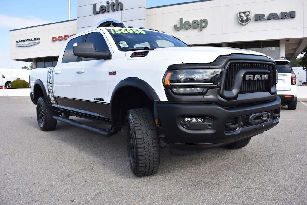 CARFAX One-Owner. Bright White Clearcoat 2022 Ram 2500 Power Wagon 4WD 8-Speed Automatic 6.4L V8 115V Auxiliary Rear Power Outlet, 12" Touchscreen Display, 17 Speaker harman kardon Premium Sound, 2 Way Rear Headrest Seat, 2-Door Passive Entry, Front Door Locks, 2nd Row In Floor Storage Bins, 4 Way Front Headrests, 4-Wheel Disc Brakes, 4.10 Axle Ratio, 40/20/40 Split Bench Seat, 4G LTE Wi-Fi Hot Spot, 6 Speakers, 8.4" Touchscreen Display, ABS brakes, Air Conditioning, Air Conditioning ATC w/Dual Zone Control, Alexa Built-In, All R1 High Radios, All Radio Equipped Vehicles, Alloy wheels, Aluminum Litho Instrument Panel Bezels w/Blk Trim, AM/FM radio: SiriusXM, Apple CarPlay, Apple CarPlay/Android Auto, Auto High Beam Headlamp Control, Auto-dimming Rear-View mirror, Bi-Function LED Projector Headlamps, Black Exterior Mirrors, Black Rotary Shifter w/Silver Stripe, Black Wheel Center Hub, Block heater, Bluetooth Handsfree Phone & Audio, Body Color Door Handles, Brake assist, Cloth Power Bench Seat w/Emboss Tread Pattern, Compass, Connected Travel & Traffic Services, Connectivity - US/Canada, Delay-off headlights, Disassociated Touchscreen Display, Dual front impact airbags, Dual front side impact airbags, Electric Shift-On-The-Fly Transfer Case, Electronic Stability Control, Engine Block Heater, Exterior Mirrors Courtesy Lamps, Exterior Mirrors w/Heating Element, Exterior Mirrors w/Memory, Exterior Mirrors w/Supplemental Signals, Foam Bottle Insert (Door Trim Panel), Folding Flat Load Floor Storage, For Details, Visit DriveUconnect.com, For More Info, Call 800-643-2112, Front & Rear Floor Mats, Front anti-roll bar, Front Center Armrest w/Storage, Front Door Accent Lighting, Front fog lights, Front Seat Back Map Pockets, Fully automatic headlights, Global Telematics Box Module (TBM), Google Android Auto, GPS Antenna Input, GPS Navigation, HD Radio, Heated door mirrors, Heated Front Seats, Heated Second Row Seats, Heated Steering Wheel, High Back Seats, Integrated Center Stack Radio, Integrated Voice Command w/Bluetooth, Leather steering wheel, Leather Trimmed Bucket Seats (GL), LED Dome Lamp w/On/Off Switch, LED Interior Lighting, Low tire pressure warning, Luxury Door Trim Panel, Manufacturer's Statement of Origin, Mirror Running Lights, Mirror-Mounted Aux Reverse Lamps, Occupant sensing airbag, Off-Road Information Pages, Overhead airbag, Overhead LED Lamps, Panic alarm, ParkView Rear Back-Up Camera, Passenger door bin, Power 2-Way Driver Lumbar Adjust, Power 2-Way Passenger Lumbar Adjust, Power Adjust 8-Way Driver Seat, Power Adjust 8-Way Front Passenger Seat, Power Adjustable Convex Aux Mirrors, Power Adjustable Pedals w/Memory, Power Black Tow Mirrors w/Convex Spotter & Memory, Power door mirrors, Power driver seat, Power Folding Mirrors, Power steering, Power Wagon Instrument Panel Spec Plate, Power Wagon Level 3 Equipment Group, Power Wagon Vertical Bar Grille w/RAM, Power windows, Premium Overhead Console, Quick Order Package 2GP Power Wagon, Radio data system, Radio: Uconnect 5 Nav w/12.0" Display, Radio/Driver Seat/Mirrors/Pedals Memory, Rain sensing wipers, Rain Sensitive Windshield Wipers, Rear 60/40 Folding Seat, Rear anti-roll bar, Rear Door Accent Lighting, Rear step bumper, Rear window defroster, Remote keyless entry, Remote Start System, Remote Tailgate Release, Security Alarm, Selectable Tire Fill Alert, SiriusXM Radio Service, SiriusXM Satellite Radio, SiriusXM w/360L, Speed control, Split folding rear seat, Steering wheel mounted audio controls, Sun Visors w/Illuminated Vanity Mirrors, Tachometer, Tilt steering wheel, Traction control, Trailer Tow Mirrors, Trip computer, Turn signal indicator mirrors, Universal Garage Door Opener, Variably intermittent wipers, Vendor Painted Cargo Box, Vendor Painted Cargo Box Tracking, Ventilated Front Seats, Voltmeter, Wheels: 17" x 8.0" Black Painted Aluminum.