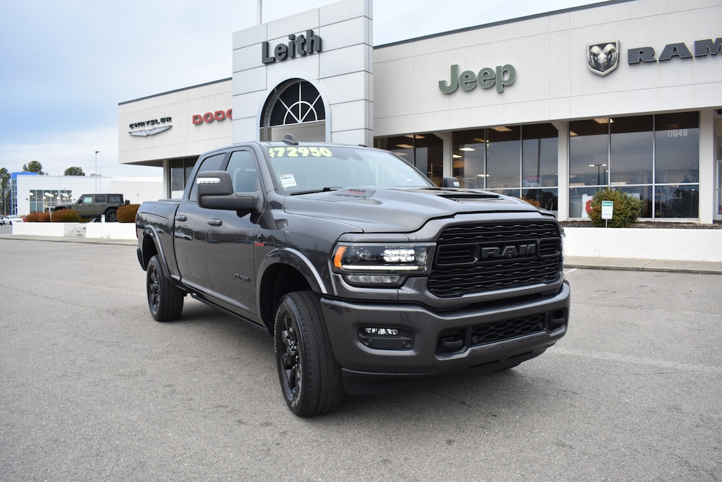 Clean CARFAX. CARFAX One-Owner. Granite Crystal Metallic Clearcoat 2024 Ram 2500 Limited 4WD 6-Speed Automatic Cummins 6.7L I6 Turbodiesel 10 Speakers, 12" Touchscreen Display, 17 Speaker harman/kardon Premium Sound, 220 Amp Alternator, 3.73 Axle Ratio, 4 Adjustable Cargo Tie-Down Hooks, 4-Wheel Disc Brakes, 4G LTE Wi-Fi Hot Spot, ABS brakes, Active Noise Control System, Adaptive Cruise Control w/Stop, Adaptive Steering System, Adjustable pedals, Air Conditioning, Alexa Built-In, Alloy wheels, AM/FM radio: SiriusXM with 360L, Anti-Spin Differential Rear Axle, Apple CarPlay, Apple CarPlay/Android Auto, Audio memory, Auto High-beam Headlights, Auto-dimming Rear-View mirror, Automatic temperature control, Black Exterior Truck Badging, Black Grille Limited, Black Headlamp Bezels, Black Ram Head Tailgate Badge, Black Tail Lamp Bezels, Black Wheel Center Hub, Body Color Grille Surround, Brake assist, Center Hub, Compass, Connected Travel & Traffic Services, Connectivity - US/Canada, CTR Stop Lamp w/Cargo View Camera, Delay-off headlights, Digital 3.0 Rear View Auto Dimming Mirror, Digital Rearview Mirror, Disassociated Touchscreen Display, Dual front impact airbags, Dual front side impact airbags, Electronic Stability Control, Electronically Controlled Throttle, For Details, Visit DriveUconnect.com, For More Info, Call 800-643-2112, Front anti-roll bar, Front Center Armrest w/Storage, Front dual zone A/C, Front fog lights, Front Performance Tuned Shock Absorbers, Full Speed Forward Collision Warning Plus, Fully automatic headlights, Garage door transmitter, Genuine wood console insert, Genuine wood dashboard insert, Genuine wood door panel insert, Global Telematics Box Module (TBM), Google Android Auto, GPS Antenna Input, GPS Navigation, HD Radio, Heated door mirrors, Heated front seats, Heated rear seats, Heated steering wheel, Hill Descent Control, Instrument Cluster Theme 8, Integrated Voice Command w/Bluetooth, Lane Keep Assist, Leather steering wheel, LED Bed Lighting, Limited Leather Bucket Seats, Limited Level 1 Equipment Group, Low tire pressure warning, Luxury Door Trim Panel (CTH), Manufacturer's Statement of Origin, Memory seat, MOPAR Deployable Bed Step, MOPAR Front & Rear Rubber Floor Mats, MOPAR Spray In Bedliner, Navigation System, Night Edition, Occupant sensing airbag, Off Road Package, Off-Road Information Pages, Overhead airbag, Panic alarm, ParkView Rear Back-Up Camera, Pedal memory, Power Deployable Running Boards, Power door mirrors, Power driver seat, Power passenger seat, Power steering, Power Sunroof, Power windows, Quick Order Package 2HM Limited, Radio data system, Radio: Uconnect 5 Nav w/12.0" Display, Radio: Uconnect 5 Nav w/8.4" Display, Rain sensing wipers, RamBox Cargo Management System, Ramcharger Wireless Charging Pad, Rear anti-roll bar, Rear Performance Tuned Shock Absorbers, Rear step bumper, Rear window defroster, Remote keyless entry, Security system, Selectable Tire Fill Alert, SiriusXM Radio Service, SiriusXM w/360L, Speed control, Split folding rear seat, Sport Performance Hood, Steering wheel mounted audio controls, Surround View Camera System, Tachometer, Tilt steering wheel, Tip Start, Tow Technology Plus Group, Traction control, Trailer Reverse Guidance, Trailer Reverse Steering Control, Trailer Surround View Camera System, Trailer Tow Pages, Tri-Fold Tonneau Cover, Trip computer, Truck Bed Cargo Divider, Turn signal indicator mirrors, Variably intermittent wipers, Vendor Painted Cargo Box, Vendor Painted Cargo Box Tracking, Ventilated front seats, Voltmeter, Wheels: 20" x 8.0" Cast Aluminum Black, Wheels: 20" x 8.0" Satin Carbon w/Chrome Inserts.