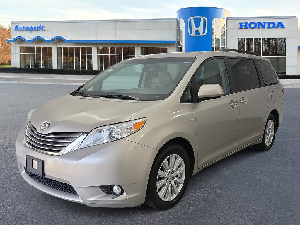 Clean CARFAX. CARFAX One-Owner. Creme Brulee Mica 2017 Toyota Sienna XLE 7 Passenger AWD 8-Speed Automatic 3.5L V6 SMPI DOHC 18" x 7" 10-Spoke Machine Finish Alloy Wheels, 3rd row seats: split-bench, 4-Wheel Disc Brakes, 6 Speakers, ABS brakes, AM/FM radio: SiriusXM, Auto-dimming Rear-View mirror, Automatic temperature control, Brake assist, Delay-off headlights, Electronic Stability Control, Exterior Parking Camera Rear, Front dual zone A/C, Fully automatic headlights, Outside temperature display, Power driver seat, Power Liftgate, Power moonroof, Power steering, Remote keyless entry, Speed control, Steering wheel mounted audio controls.